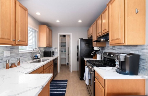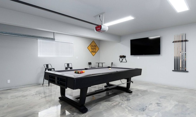 But the real magic extends beyond the walls. Enjoy the coastal breeze from your private balcony with a grill and outdoor seating. Head down to the patio to gather around the cozy fire pit for s'mores and conversation under the stars. The garage has been transformed into an amazing game room, complete with a pool table, seating area and a smart TV —the perfect spot for a little friendly competition. We provide everything you need for a fun day at the beach, including a wagon, beach chairs, beach towels, and beach toys. Plus, a convenient laundry area means you can pack light and stay a while.