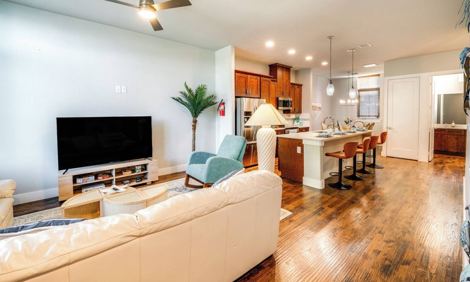 Tucked away in the heart of Farmers Branch, this beach-inspired 3-bed, 3.5-bath vacation rental offers the best of both worlds — a cozy retreat and everything you need just around the corner. Enjoy walkability to restaurants, groceries, The Firehouse Theatre, and a stunning creekside rose garden. Even better, the Galleria, downtown Dallas, and more family attractions are all just a short drive away.