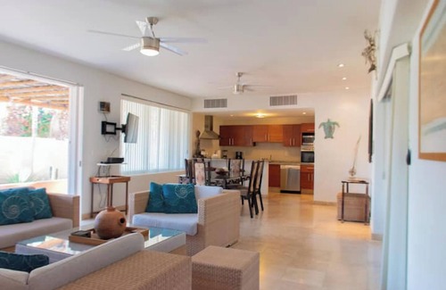 Wake up just steps from the beach and get amazed by La Paz beautiful sunsets and starry nights. Villa 6 gives you cozy spaces for you and your companions. With comfortable, illuminated and contemporary decorative rooms, this is an ideal space for your vacation with family and/or friends.