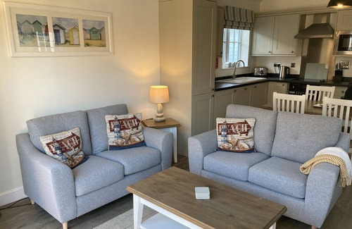 Amenities: Gas central heating with woodburner. Electric oven and ceramic hob, microwave, dolce gusto coffee machine, fridge/freezer, washer/dryer, dishwasher. Smart TV with Freeview, Netlix and Prime Video, WiFi, selection of books, games and DVDs. Bed linen and towels inc. in rent. Travel cot and highchair. Off road parking. Two well-behaved pets welcome. Sorry, no smoking. Shop and pub 2 mins walk. Off-road parking for 2 cars. Communal gardens with picnic area and lakes. Beach 10 minute walk. Note: Use of indoor swimming pool, sauna and steam room included in rent. Note: Access to the gymnasium is complimentary with the Bay leisure pass.