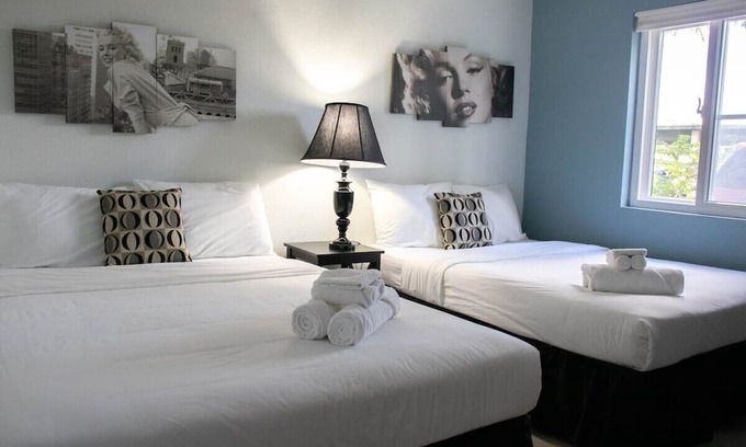 Discover our cozy 1 bedroom featuring two full-size beds, designed for a comfortable and refreshing stay. The clean and well-appointed space includes a kitchenette, complete with a mini fridge, electric kettle, plates, coffee cups, and utensils for your convenience.