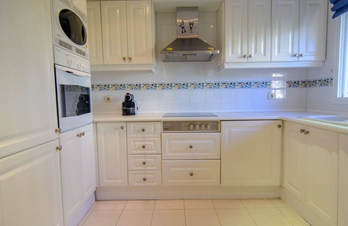 The kitchen is neat and has all the appliances needed for a comfortable stay: oven, Nespreso coffee maker, Balay dishwasher, recessed refrigerator and freezer, vitro ceramic, toaster, water kettle, Balay washing machine. From here you may access a small laundry room. The apartment also has a service toilet.