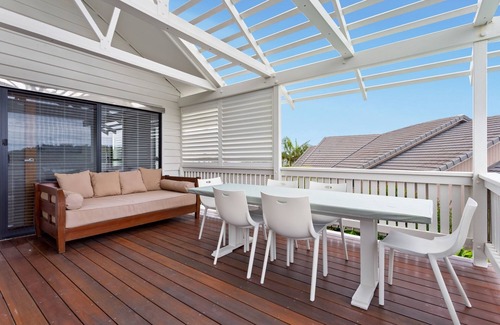 Escape to the seaside in this elegant 3-bed house with a stunning pool. Located within a short walk to the extensive beachside and local shops immerse yourselves in the wonder of Warana. Featuring a sleek modern design this coastally decorated home has numerous communal spaces that weave the outside in. With extensive outdoor seating and an exquisite pool situated at the edge of the spacious yard, embrace the calm lifestyle of oceanside living.
