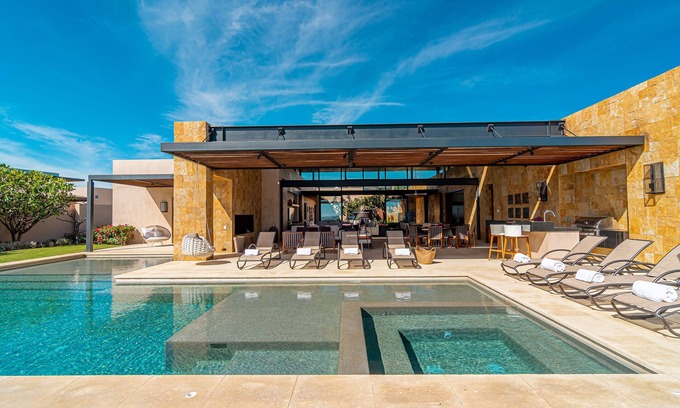Mere steps from the sand and water, West Enclave 4 was designed for a truly upscale, beachfront experience in the exclusive Puerto Los Cabos community of Los Cabos. The desert contemporary style home almost becomes part of the natural landscape itself, as it incorporates the same hues of its surroundings, while also elevating guests to an entirely new level of luxury. The five-bedroom, 6.5-bath home can accommodate up to 12 guests, as it sits right on the beachfront, but also manages to deliver an almost private experience in one of the region's most celebrated master-planned communities.