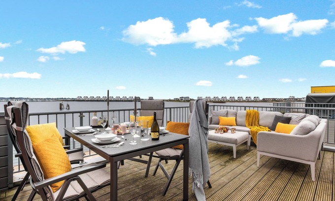 Beachfront Baltic Sea vacation apartment "Santiano Lounge" with water view over 2 levels is located in Olpenitz. Beachfront Baltic Sea vacation apartment "Santiano Lounge" with water view over 2 levels provides accommodation, featuring Balcony/Terrace, Barbecue/Outdoor Cooking, Child Friendly, among other amenities. This Apartment features Balcony/Terrace, Barbecue/Outdoor Cooking, Child Friendly, to make your stay a comfortable one.