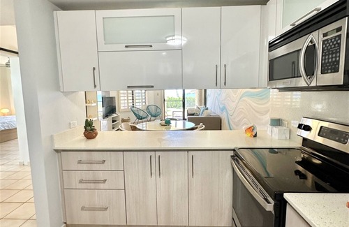 Step inside to discover a beautifully remodeled space, featuring 2 bedrooms and 2 bathrooms. The master bedroom boasts a luxurious king bed, while the second bedroom offers a cozy bunk bed with twin beds, perfect for families or friends traveling together.