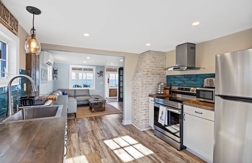 After a day at the beach, return to relax with plenty of AC and a large smart TV in the living room! Or, if you prefer, open the windows on the enclosed porch with dining seating for 6 and enjoy the lovely sea breezes. So refreshing! Then fire up the grill for dinner on the deck. After dinner, take a long walk and watch the sun set over the ocean.
