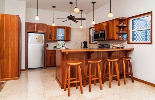 Nestled just 4 miles north of San Pedro Town, our oceanfront paradise sprawls over 5 acres of meticulously landscaped grounds, promising an unparalleled vacation experience. Immerse yourself in the lap of luxury with not just one, but two expansive swimming pools—including one with a built-in swim-up ledge, perfect for enjoying your own drinks poolside. Please note: while there's no staffed bar, the setup offers the ideal spot to relax and sip in the sun.