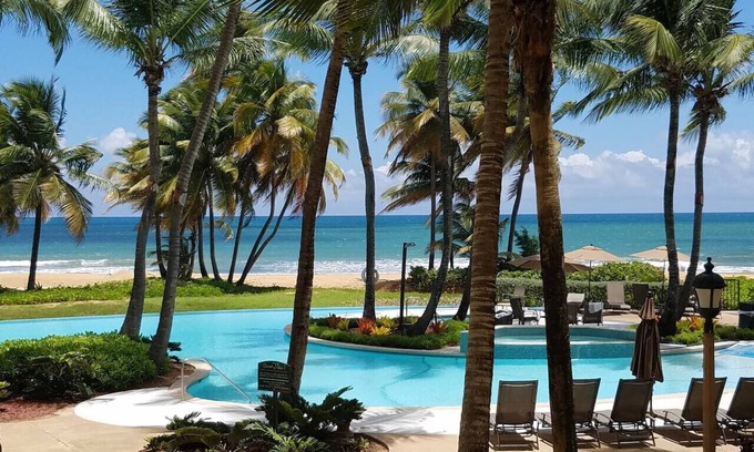 Beachfront large 1 bedroom, 1 bath villa inside the premises of the Wyndham Grand Rio Mar Resort & Margaritaville. Two 18-hole golf courses, casino, tennis, watersports rental. Next to Puerto Rico`s top attractions (El Yunque Forest waterfalls, Biobay Lagoon & Ferry Dock for day trips to Vieques and Culebra Islands).