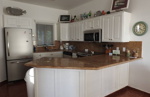 The beautifully appointed kitchen is fully stocked with everything you need to prepare meals at home: stainless steel appliances, granite countertops, a full range of cookware, dishes, glassware and even a blender for fresh margaritas or smoothies. Whether you're whipping up a quick breakfast or a sunset dinner, you'll have all the tools at your fingertips.