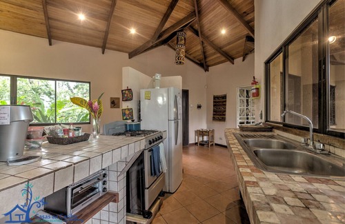 Steps from Cocles Beach, Casa Koda is a 3-bedroom, 2-bath home with a private garden, outdoor terrace, and full kitchen. Pet-friendly, perfect for families or groups seeking a beachfront escape.Welcome to Casa Koda, a tropical beachfront home just steps from Cocles Beach in Costa Rica’s Caribbean.- 3 bedrooms / 2 bathrooms, sleeps up to 6 guests- Spacious terrace with outdoor dining and lounge area overlooking a lush garden- Fully equipped kitchen: gas stove, oven, coffee maker, refrigerator, cookware- Fans and screened windows keep the house cool with ocean breezes- Private gated parking and secure entrance- Pet-friendly property, surrounded by nature and wildlife- Walking distance to restaurants, markets, and local surf spots