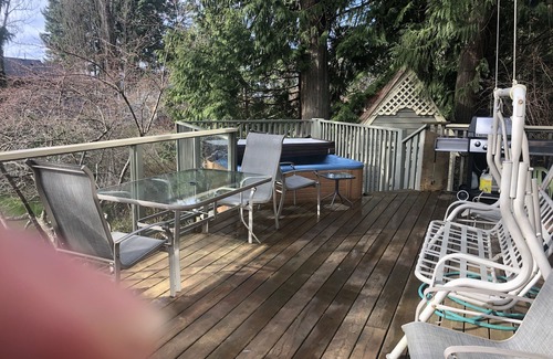 Our Beach Cottage (see vrbo 338847) is a spacious two bedroom bungalow featuring a fantastic view of the water, wood fireplace, soaker tub, garden-view king suite that has a private hot-tub just outside your door, as well as sleeping for four on the water-view 2nd bedroom with twin/double bunk and twin bed.