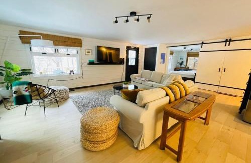 Featuring a garden, Beachfront Cottage in Prince Edward County features accommodations in Emerald. This beachfront property offers access to a patio, free private parking, and free Wifi. Guests can use a terrace. The air-conditioned vacation home consists of 2 bedrooms, a living room, a fully equipped kitchen with a dishwasher and a coffee machine, and 2 bathrooms with a shower and bathrobes. Towels and bed linen are available in the vacation home. The property has an outdoor dining area. Sandbanks Provincial Park is 30 miles from the vacation home.