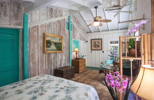 Step back in time to the charm of old Kauai under the swaying palm trees at the Anini Boat House. Slow down, unplug, and savor the tropical beauty at this romantic one-bedroom Beach House with the sound of the ocean lapping on the shore 75 feet from your front door.