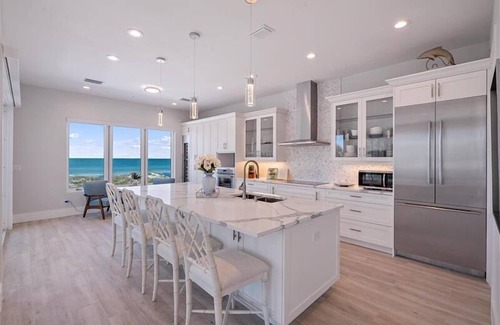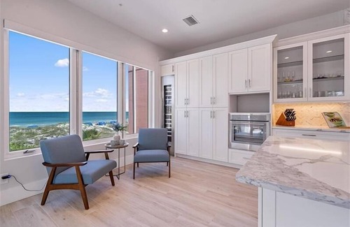 For those seeking more than just stunning scenery, our home also features a private pool and spa, complete with nighttime lighting, sun loungers, and a private beach access walkway leading directly to the soft sands of Indian Rocks Beach.