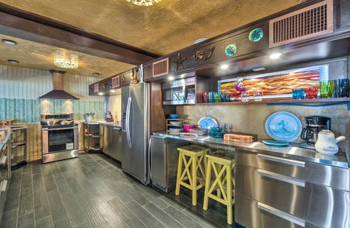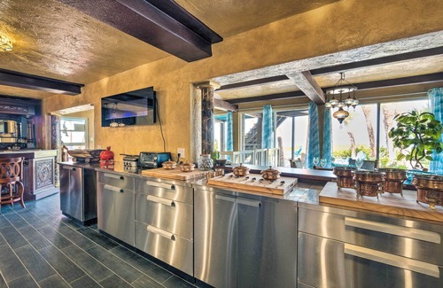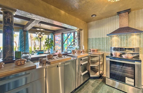 GOURMET KITCHEN: 2 fully equipped kitchens, stainless steel appliances, stainless steel storage & cabinets, eat-in breakfast bar, drip coffee maker, full knife set, high-end culinary essentials, electric fireplace, toaster oven, full wet bar, blender, Crockpot, spices, dishware & flatware
