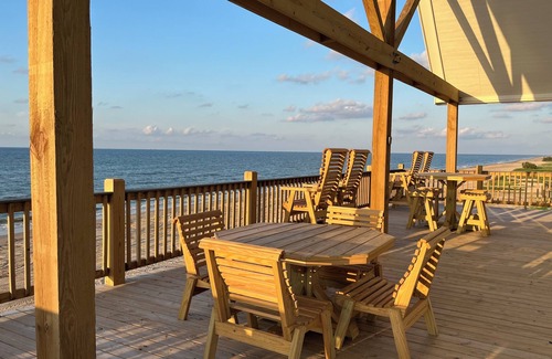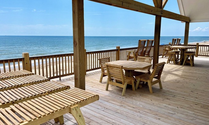 WRAP AROUND DECK with beachfront seating for everyone! The very best views in both directions on the beach, there's always something to see. There's nothing between you and the waves of the gulf. You can walk right out onto the sand, its literally 50' to the water's edge at high-tide! Take your coffee out for a great start to your vacation day.