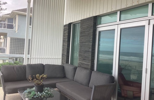 Walk out the door and straight to the sand . Or chill out , and gaze out to the Pacific Ocean from either of the 2 comfortable lounges at the front of the house.