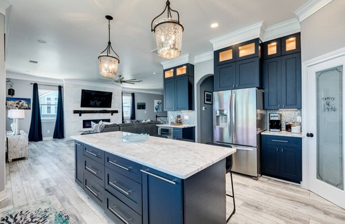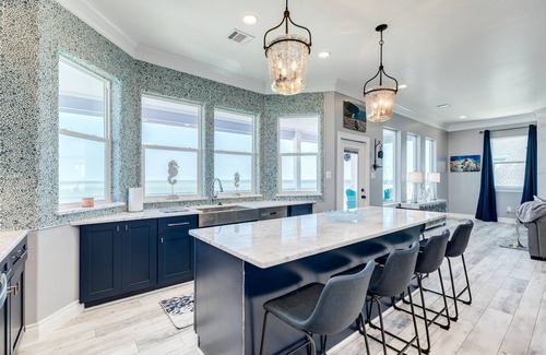 Designed for multi-generational families or groups of friends, the home includes thoughtful amenities: a 3-stop cargo/elevator lift for groceries and luggage, Dish Network TVs in every room, and high-speed Wi-Fi. The fully stocked kitchen makes preparing family meals a breeze, while the expansive decks — 1,600 sq. ft. on the first level and 1,000+ sq. ft. on the second — provide ample space to unwind. Soak up the sun, enjoy alfresco dining, or simply relax with a cocktail as you take in panoramic ocean views.