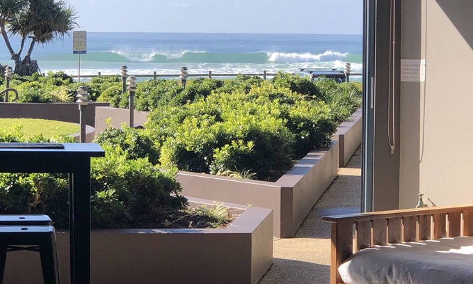 This Beachfront unit boasts fabulous Ocean views throughout and is located only minutes walking from shops, restaurants, cafes. 7mile beach is just a cross the road. In the large bedroom we have a comfy king size bed & 2 daybeds in the patio area for relaxing or extra guests. The patio area can be fully enclosed with floor to ceiling bifolds or during the day can be open to get the ocean breeze.