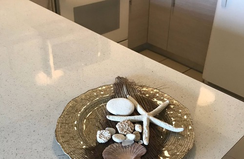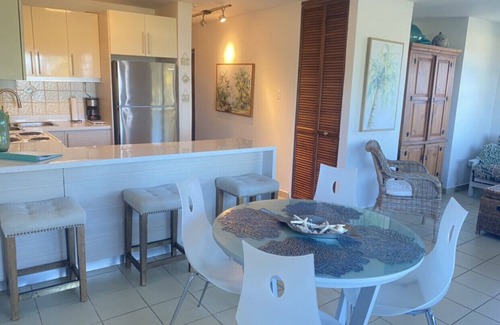 amazing ocean views all decorated contemporary nautical theme.Adjacent to the dinning room is the balcony with 2 rocking chairs a table and at the other side a high table with 2 chairs so you can enjoy breakfast or wine while admiring the vistas.