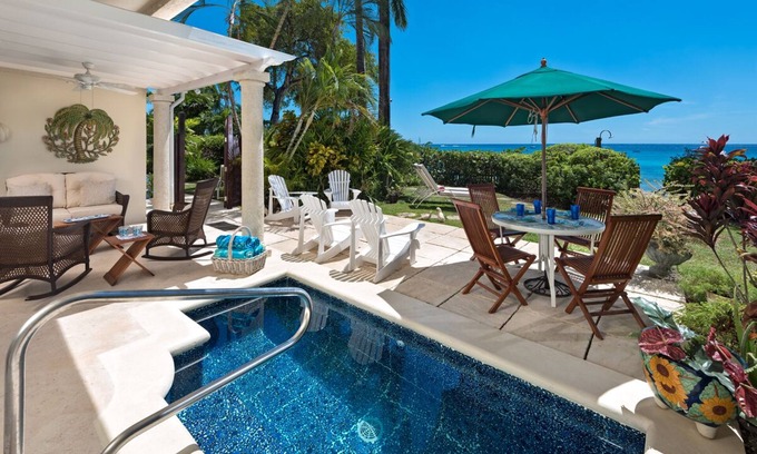 Mahogany Bay-Fathom's End is a beautiful three-storey beachfront townhouse that offers stunning sea views from every bedroom. It is located just a short drive south of Holetown's famous shopping district and restaurants on the illustrious West Coast of Barbados. This charming holiday home comes with cook service included, providing added luxury.