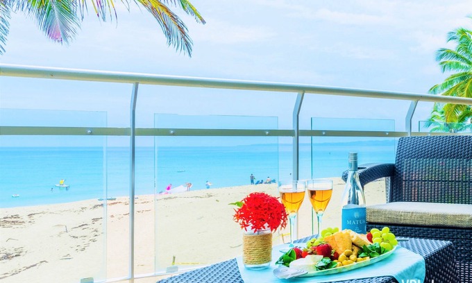 Located beachfront on Rincon's famous Sandy Beach. Newly furnished/remodeled, and featuring all the amenities: ✓ Bedroom AC ✓ Fast WiFi ✓ Full kitchen ✓ Quality towels & linens ✓ Free gated parking for 2 vehicles ✓ Shared beachside pool ✓ Beach chairs & cooler