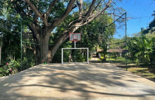 The property is almost a hectare (around 2.25 acres) and features: a main house with 3 bedrooms, 2 bathrooms, a living room, kitchen, porch, patio, and two dining tables. The pool has two separate living areas, a shaded one and a deck up front. A separate cottage (honeymoon suite) has a king-size bed, a beautiful half-open bathroom and private terrace. There are a trampoline and a zip-line for the kids in backyard, as well as plenty of board games. Hi-speed WiFi throughout the property and cable TV in the living room (main house). Sleeps 10 people max.