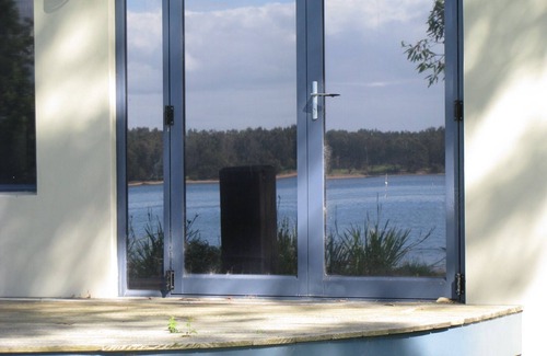 Downstairs has a large queen bedroom with wall to wall mirrored wardrobe, this room looks out across the water to the ocean.
