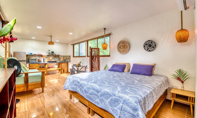Beachfront Studio - Direct Beach Access, AC & Fast WiFi is located in Puerto Viejo, facing Cocles Beach, with free WiFi, just 1.9 km from the Jaguar Rescue Center. It offers a garden and free private parking.