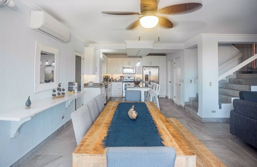 Ideal for families, friends, or long stays — this spacious ocean-view vacation rental features a main house + guest casita, 7 beds, 3.5 baths. Enjoy sunsets from the balcony, snorkeling in the bay, or cocktails at the nearby beach club, and everything you need for an unforgettable tropical escape.