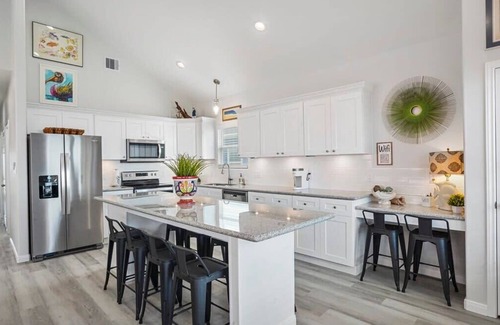 Lazy Gator is a beachfront 3BR/2BA retreat in Gilchrist! Sleeps 10 with 2 king beds & custom bunk room . Enjoy ocean views, outdoor shower , Smart TVs , gourmet kitchen , games , Wi-Fi & pet-friendly vibes. Just steps to the sand & minutes to Crystal Beach + Galveston Ferry . Perfect for families & groups — book your beach escape today!