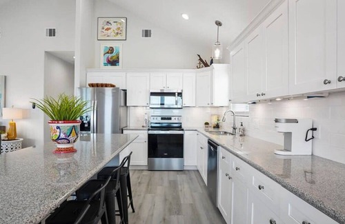 The open floor plan is perfect for families — lounge in the cozy living area, stream your favorite shows, or whip up meals in the fully stocked gourmet kitchen with stainless appliances and a coffee bar (Keurig + drip ).
