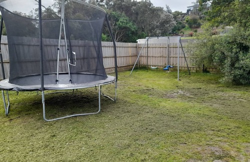 Vintage Beachouse centrally located 2min walk to sandy Lake Victoria, petrol station and bakery. 90 Mile Surf Beach is a super close outing at a budget friendly price. Suited to families or couples that don’t want to pay expensive prices. Catering up to 5 people with 2 bedrooms each containing a double bed (optional fold out bed/couch in the lounge). With 3-star facilities, ample equipped kitchen, heating/cooling, linen, digital TV, undercover BBQ area, and trampoline.