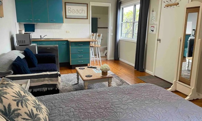 Spoon Bay is 300m to the waters edge and Forresters Beach is only 350m away from this cute cottage. Hear the waves and feel the sea breeze from this private, quiet & comfy space in my beautiful garden. Coffee shops and restaurants are close by at Forresters Beach village shops. Terrigal is only a 3km walk along the Beach (or 5 min drive). BBQ, Kitchenette, fridge, microwave, toaster, tea/coffee supplied. Reverse cycle air conditioning. Private, safe access.