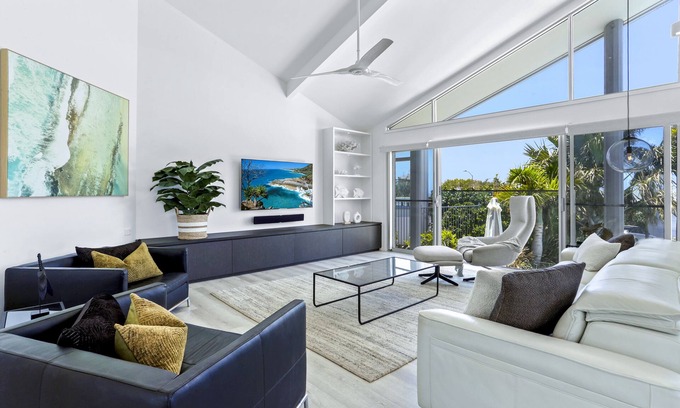 This luxury, pet-friendly beachside property has been recently renovated inside and out. The result is a stylish and contemporary retreat that flows across three levels, with expansive outdoor entertaining spaces from which to enjoy the magnificent ocean views. This home sleeps up to 8 guests across 3 generous bedrooms and an additional open, loft-style space. (Please Note: this room is strictly not suitable for children under the age of 10).