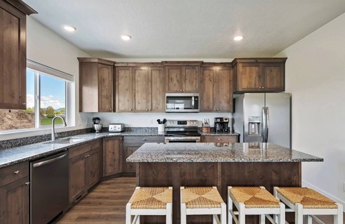 Our kitchen features an open concept which blends into a cozy gathering room for your family to relax. Enjoy a full size Pac-Man/Galaga arcade machine as well as ping pong table. New top of the line appliances will be at your fingertips at the end of fun filled day exploring the Bear Lake Valley to create culinary delights for your family. Come stay with us at Beacon Point.
