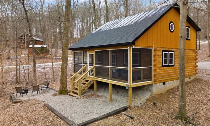 Escape to the tranquility of Bear Creek Cabin in the woods! Located near Patoka Lake main entrance this log cabin is the perfect place for a relaxing reset with easy access to restaurants, winery, boating, hiking, and fishing and so much more. As well as an easy drive to French Lick and Holiday World. Amenities such as the fire pit and screened in porch offer space for everyone to comfortably enjoy your stay.