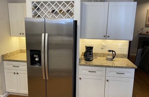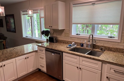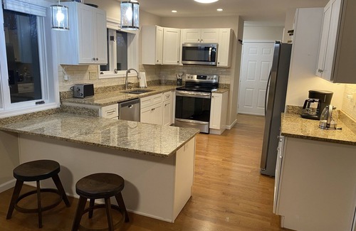 House sleeps 6 in the 3 bedrooms, with capacity to sleep up to 4 more on the sleeper sofa in the sunroom and queen air mattress. (Sleeper sofa best for kids not adults.) Primary bedroom has king bed and en suite bathroom with tub and shower. Bedroom #2 has queen bed. Bedroom #3 has 2 twin XL beds. The second full bathroom is located adjacent to the 2nd and 3rd bedrooms. Half bathroom conveniently located in the hallway. The house is all one level with only 1 step up to the front door. Great high-speed internet and wifi so you can do work or school from the house, and stream all your favorite shows on the TVs.