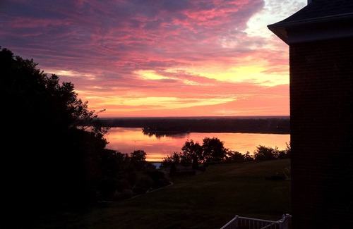 We are located at 500 North Street. The Bear's Den has a southern, street view. However, there is an outdoor deck with a spectacular view of the Mississippi River and our double-lot, flower garden. This room provides a Tempurpedic, King-sized mattress + a fold-out child's bed (children under 6-years - stay FREE!). The bathroom was added in 1920; it has all new plumbing; and is surfaced with original tile on the floor and in the shower. (The hot tub is only available to Penthouse guests on the third floor.)