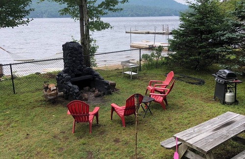 The front deck extends the living space greatly. Meals on the deck are extra special. A small propane grill is available for grilling. Gathering around the outdoor stone fireplace is a great way to end an Adirondack lakefront day.