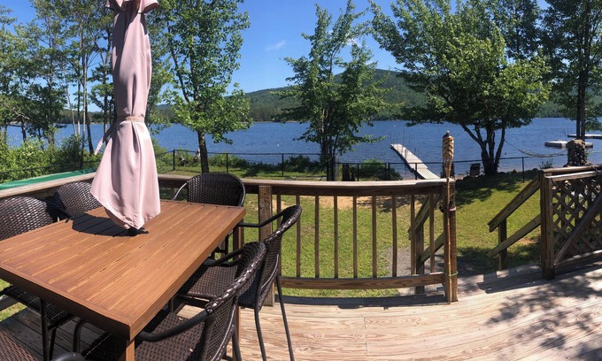 Experience true Adirondack summer lake life at Bearfoot Loj. It is an easily accessible- flat walk to the sandy beach. This is something hard to find in Long Lake! A double kayak, a rowboat, a canoe and a SUP are available for you to use to get you out on the water. Bearfoot Loj is 1.3 miles from town. Walk/boat/drive to the restaurants. Bearfoot Loj is on a private dirt road, quiet from all traffic. The small updated home has an open concept living/kitchen area. Fenced in lawn helps to keep children contained and away from the water. There is a long dock with lots of parking space for boats if you bring one or rent one!