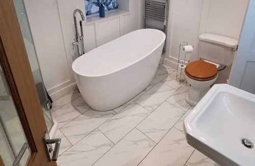 The cottage has been specifically designed with a modern conversion. With ample living space (1100 sqm) for maximum comfort, well-furnished with an ensuite shower in the main bedroom, deep soak bath/shower, kitchen, dining & living areas. Additional features include: free high-speed Wi-Fi, Smart TV, Netflix.
