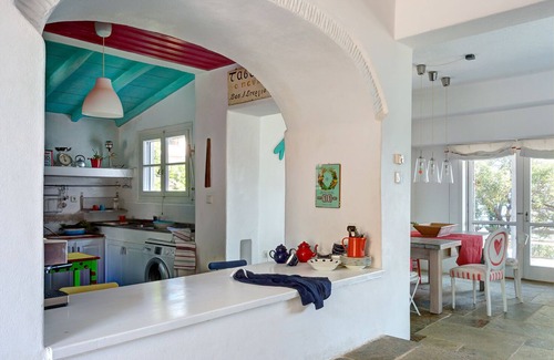 The village of Amaliapolis ( known also as Mitzela) is 20 kms from New Aghialos International airport with breathtaking view of the bay and mount Pelion, artisticly decorated house with full size kitchen, dining room and large balcony. The coastal area is only a few minutes walking distance. The house is only 100 meters from the village beach with 2 nice cafes ,sunbeds etc. Within walking range there are also many secluded sundy beaches and one can also take a small boat trip to the island across the bay where you can pic-nic on the beach and enjoy the day.