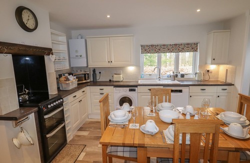 Amenities: Gas central heating with woodburning stove. Oven, microwave, fridge/freezer, washer/dryer, dishwasher. Smart TV with Freeview, WiFi. Fuel, power and starter pack for woodburning stove inc. in rent. Bed linen and towels inc. in rent. Highchair and cot available. Ample off-road parking. Balcony with patio and furniture, access to large, enclosed gardens which are shared with owners with gravel, lawn. Secured enclosed area around the cottage. Two well-behaved dogs welcome. Shop 0.5 miles, pub 0.1 miles. Note: There are shallow steps leading up to the property, please take care. Two well behaved dogs allowed [above 12 months old] - supplement of £25 for 1 dog - and £30 for 2 dogs. No smoking - smoking is not permitted in the property or on the grounds - additional charges will be made is there is evidence of smoking at the property. Please note - This property only accepts a Monday or Friday check in.