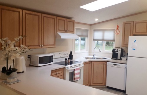 Our suite has only three steps and you are on our covered porch entrance. You enter the kitchen and dining area and just beyond that is our spacious comfortable living room. Our home is spacious with an open floor plan. We have provided you with most the amenities that you will need for comfortable stay which includes high speed wifi, full cable and a landline for your convenience. You can relax and get a good night's rest on one of two queen size beds. When you go thru the middle bedroom you can walk out on to the back deck and enjoy the spectacular view of the hay field and Beaufort Mountain Range. Just around the corner is one Port Alberni's popular destinations The Stamp River provincial park and you definitely want to see the McLean's Mill national historical site both places only seven minutes away. We welcome you to plan your next vacation to stay here. See you soon.