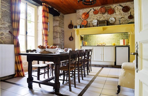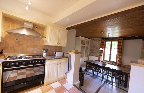 The house has a large living room with tv (english and french channels) and an extensive library. A large dining/kitchen comfortably seats 12 people at the hand made oak dining table. The kitchen is exceptionally well equipped with double oven, gas hob, 2 fridges, dishwasher, microwave, 2 sinks, coffee maker, kettle and toaster.