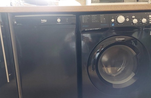 The kitchen has a fridge, a hob, an oven, a kettle, a toaster a freezer and a microwave.