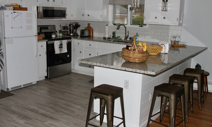 Plenty of amenities to make your stay more comfortable: Full kitchen with gorgeous coffee bar, instapot, airfryer, BBQ gas grill, washer, dryer, adjustable heat and air conditioning, 3 TVs, WIFI, ample parking.