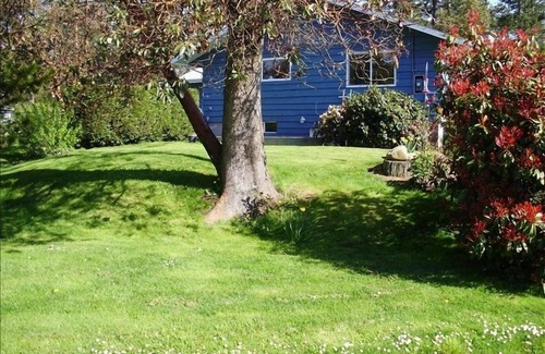 “Welcome home” to Wallace House, a vacation rental suite located between Victoria and Sidney in beautiful Saanichton. Perfectly located, we are only 10 minutes away from the famous Butchart Gardens, Victoria International airport, the Swartz Bay Ferry Terminal, and the Anacortes Ferry Terminal. Victoria is an easy 20 minute drive away. Sidney is even closer, a 10 minute drive. Wallace House is situated on over half an acre. Although we are in the country, we are an easy walk to a major grocery store, banks, restaurants, coffee shops and all other amenities. We are adjacent to walking and bicycling routes and trails. We have views across the farm land to the ocean, Gulf Islands and Mount Baker. Our guests can walk to a local beach in about 20 minutes.